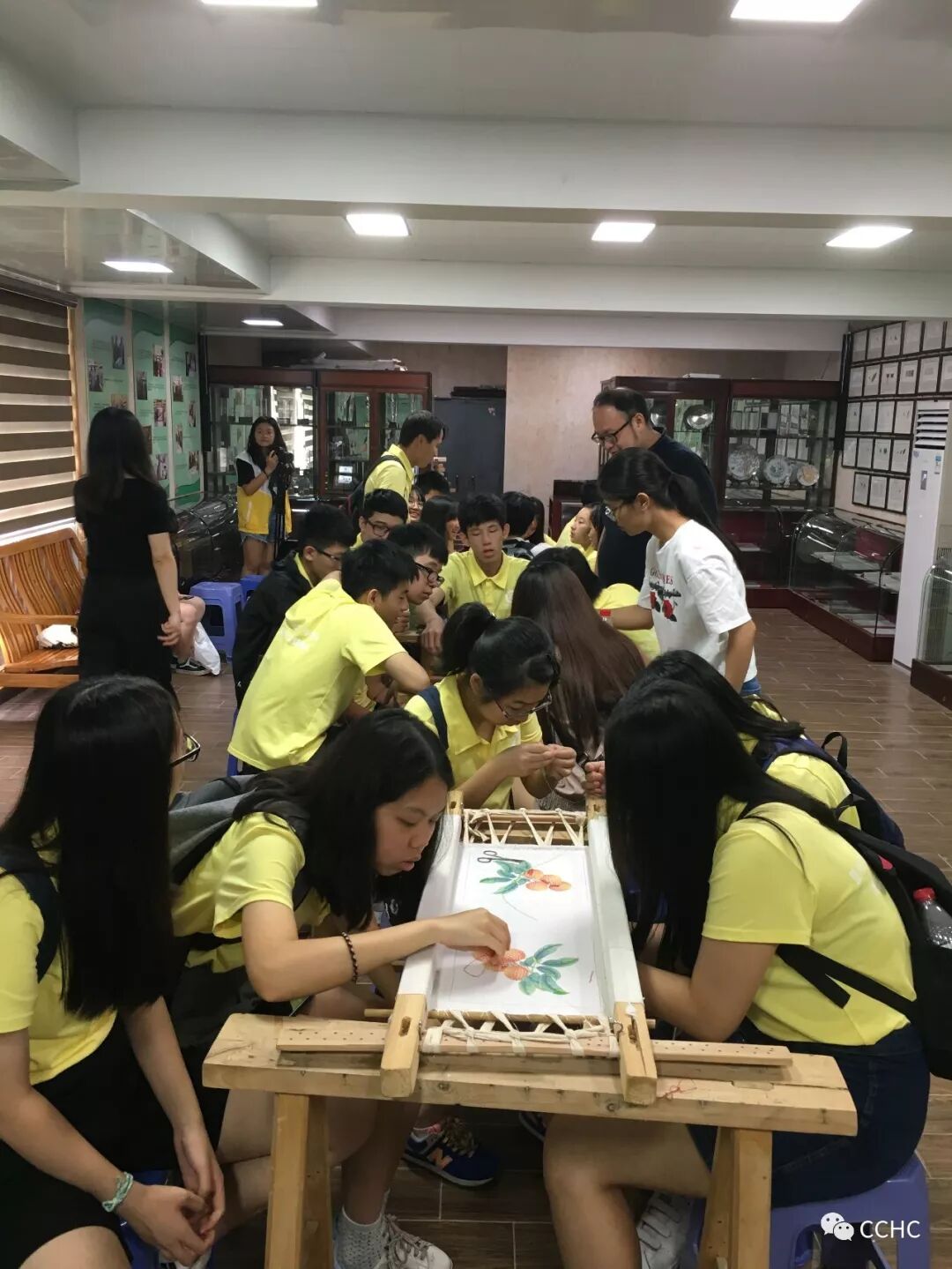 在大師的工作間裡學習廣繡製作,體驗了刺繡製作,大家也對自己的第一次刺繡興奮不已。