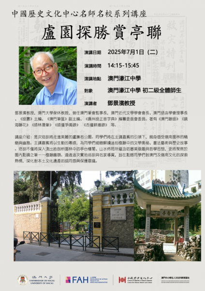 活 動 資 料 活動名稱 : 盧園探勝賞亭聯 地點 : 澳門濠江中學 主辦單位 : ...